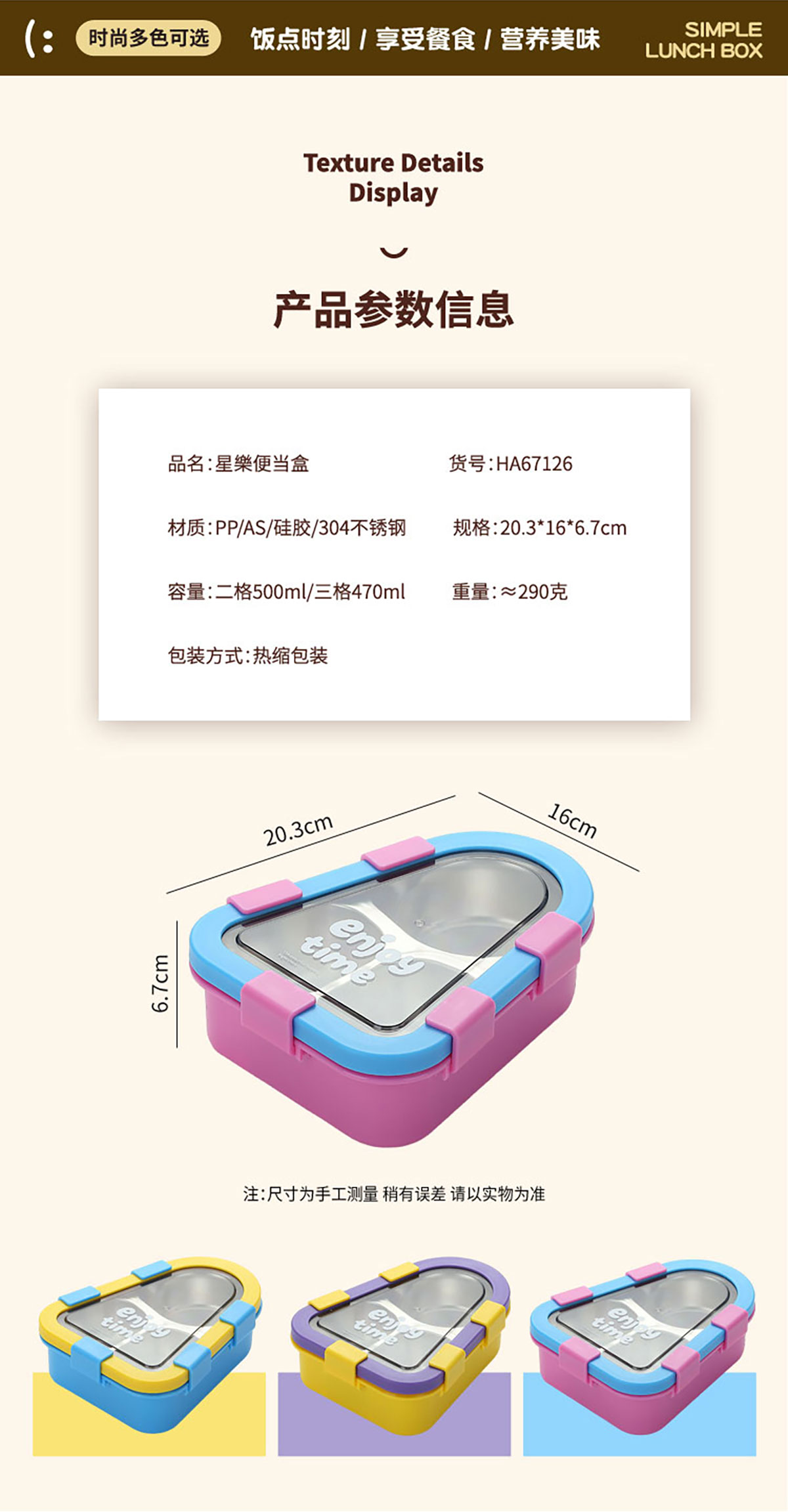 Size: 203*160*167mm/二格500ml/三格470ml